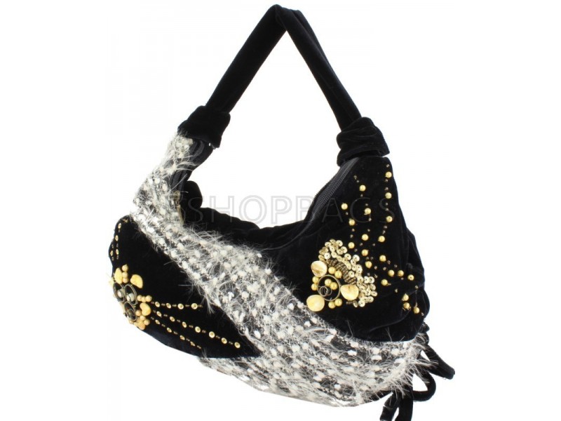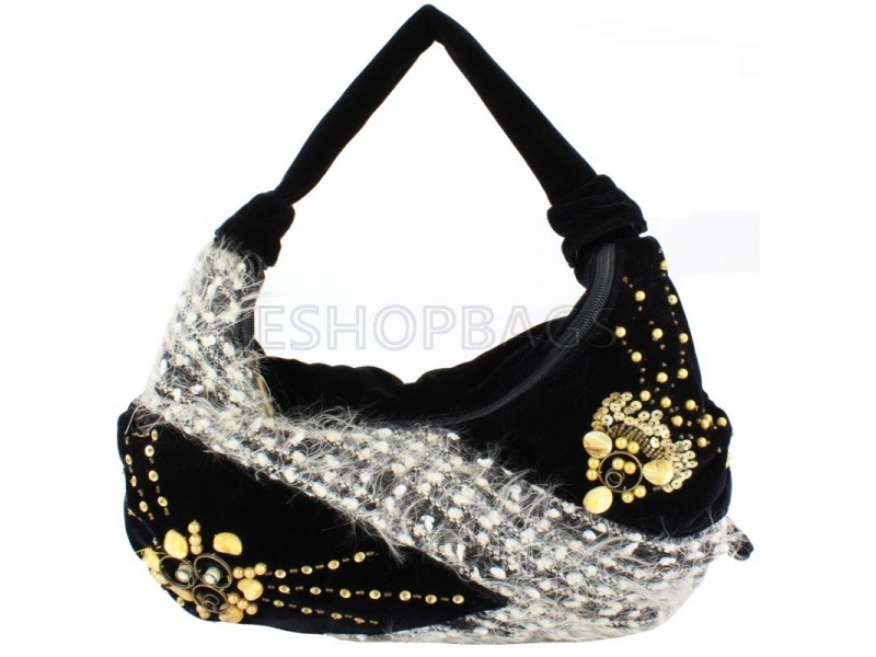 Τσάντα από υλικό suedeμε πανέμορφες λεπτομέρειες στρας.